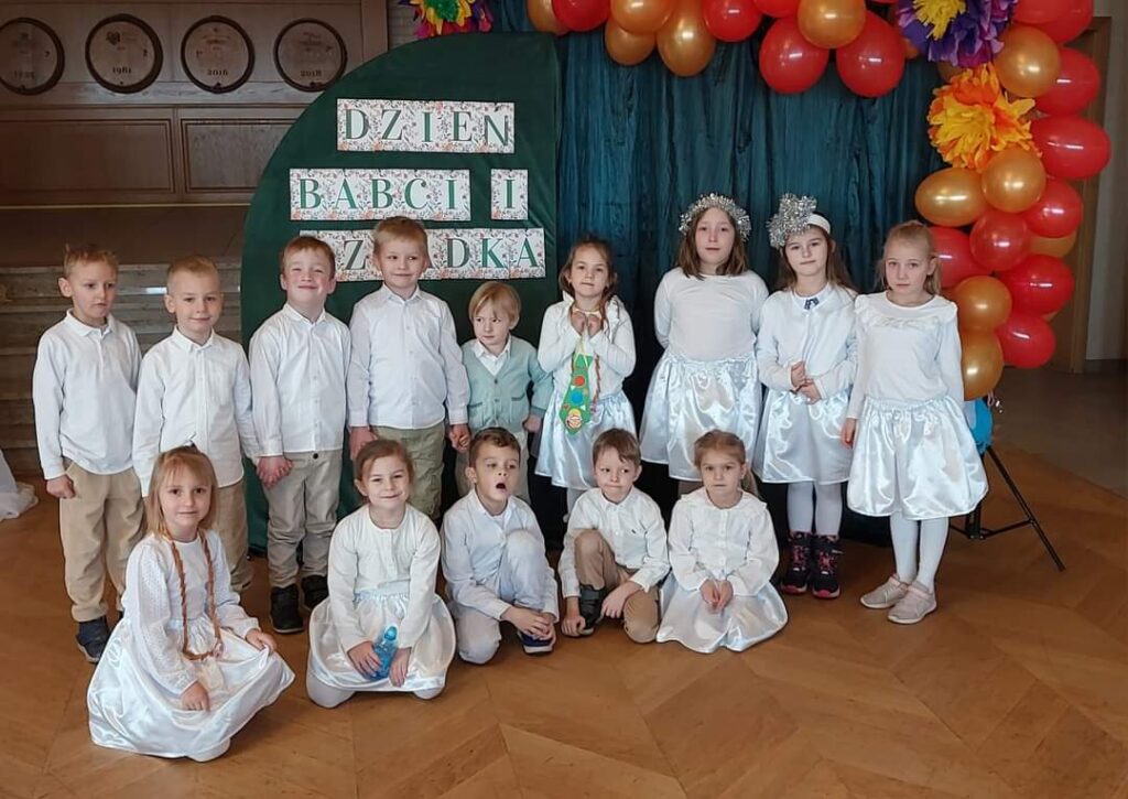 Dzień Babci i Dziadka to jedne z najpiękniejszych dni w roku. W tych dniach babcie i dziadkowie obdarzani są szczególnymi dowodami miłości. Zaproszeni dziadkowie licznie przybyli, aby podziwiać występy swoich wnucząt. Uroczystość rozpoczęła pani dyrektor Alina Wasilewska oraz Hania wierszykiem które serdecznie przywitała przybyłych gości. Dla kochanych solenizantów przygotowano poczęstunek a wspaniały program artystyczny przedstawiły dzieci. Przedszkolaki przygotowały na tą okazję program artystyczny w postaci piosenek i tańców oraz tance przygotowane przez Pana z Tańców oraz piękne Jasełka