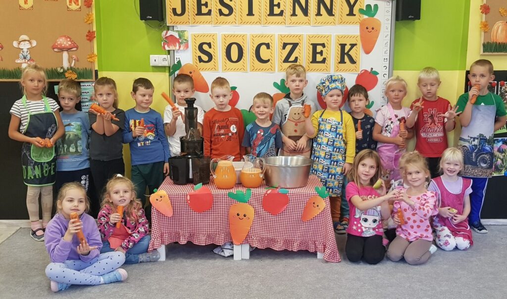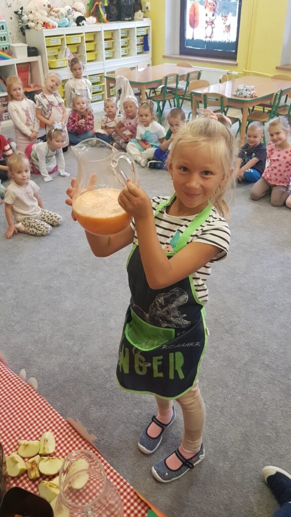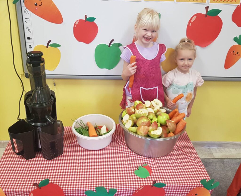 Dzieci z naszego przedszkola miały dziś wyjątkową okazję samodzielnie przygotować zdrowy sok z jabłek i marchewki. Z zainteresowaniem obserwowały działanie wyciskarki, a później mogły spróbować pysznego, naturalnego napoju.