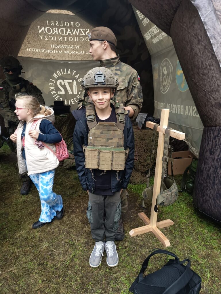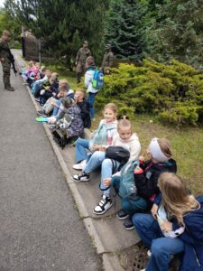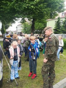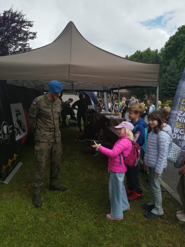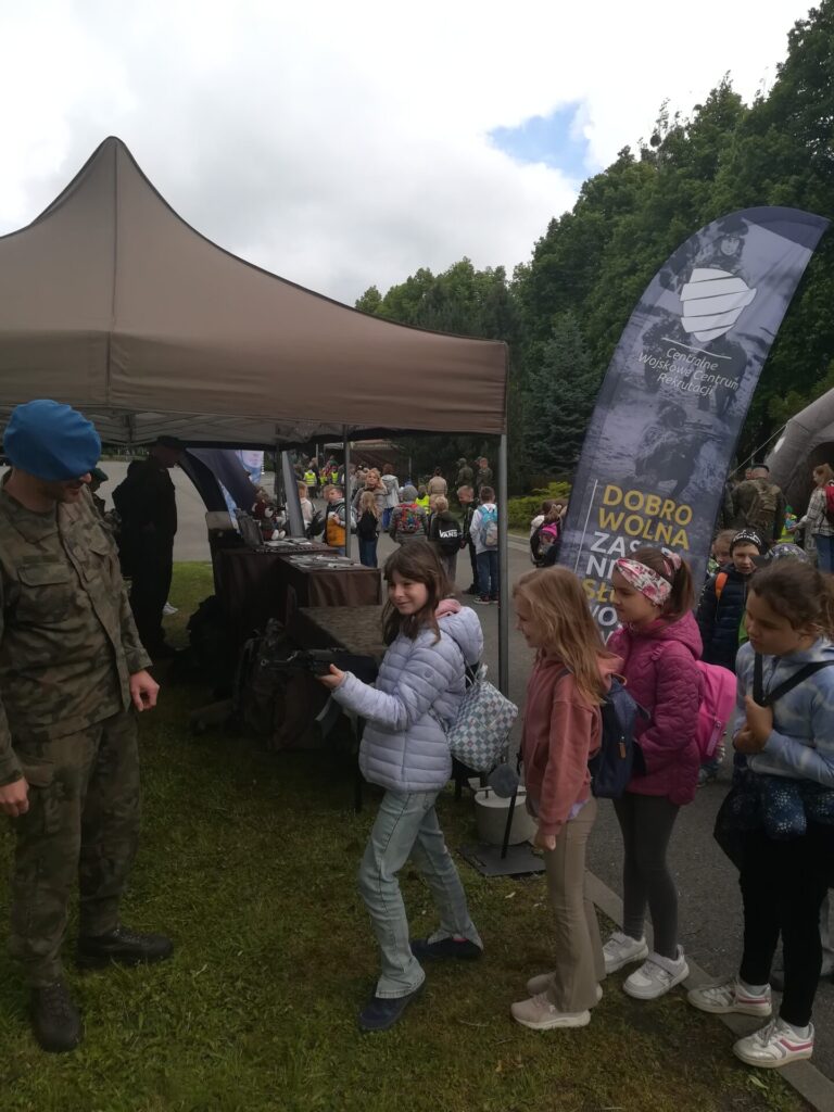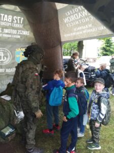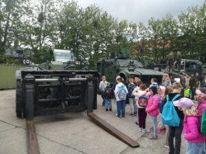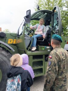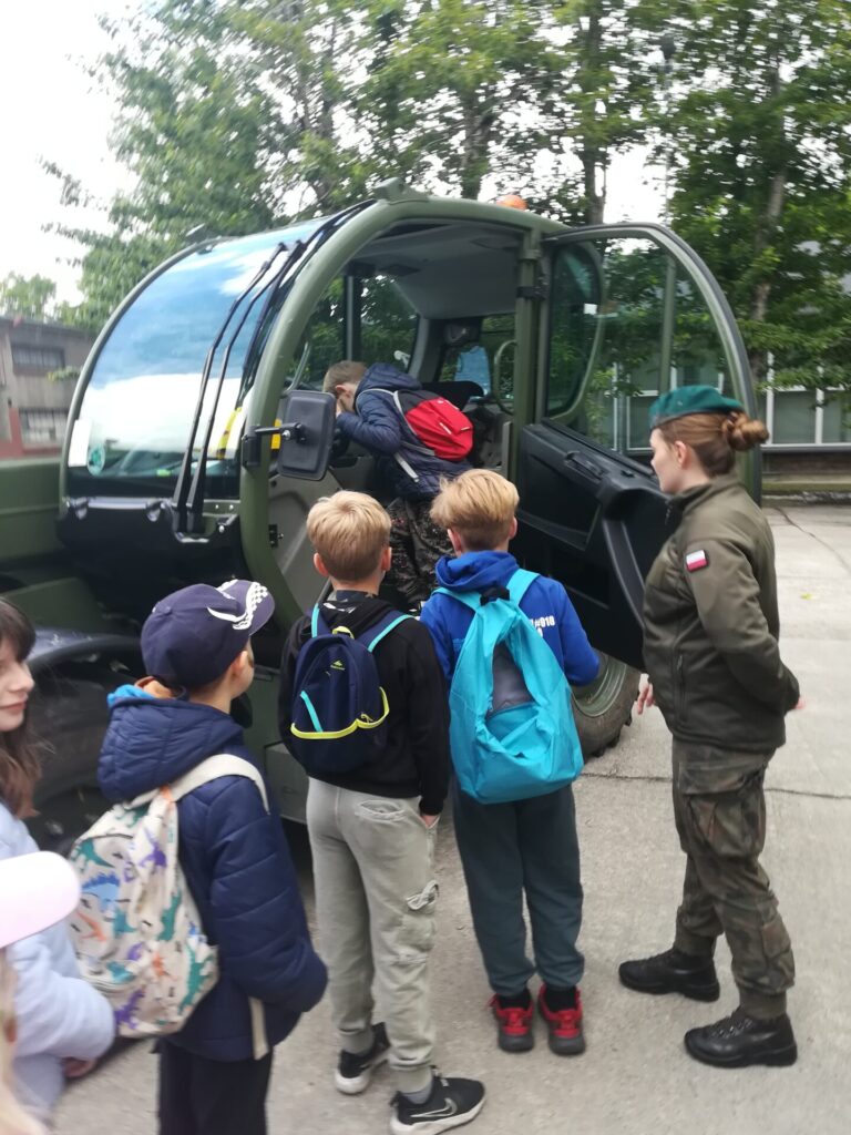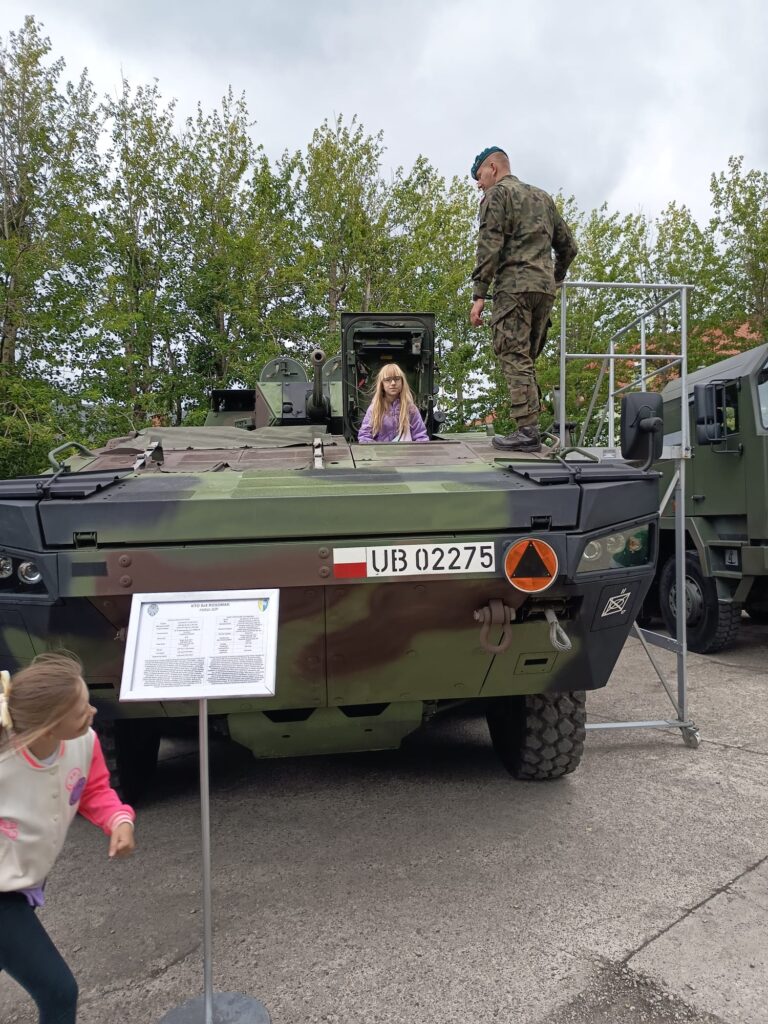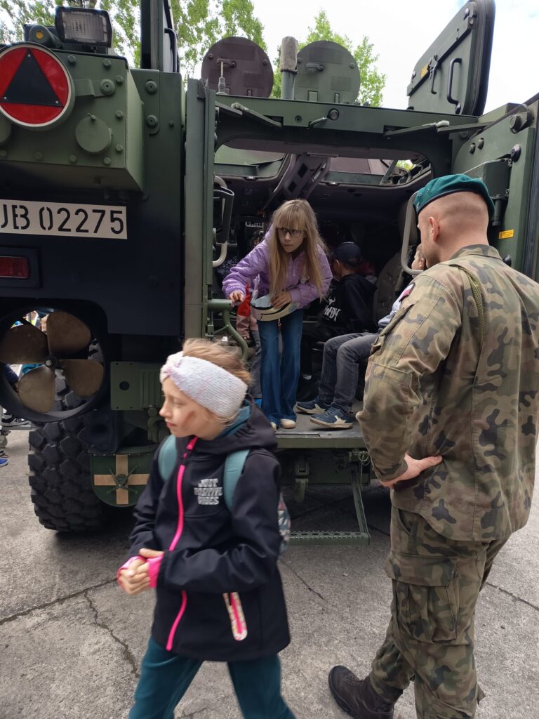 29 maja uczniowie klas I-III zwiedzali koszary 10 Opolskiej Brygady Logistycznej. Dzieci z ogromnym zainteresowaniem poznawały tajniki wojskowej codzienności. Zwiedzały pojazdy wojskowe, zaglądały do namiotu szpitalnego, brały udział w pokazach udzielania pierwszej pomocy, a także mogły na własne oczy zobaczyć specjalistyczny sprzęt wykorzystywany przez żołnierzy. Nie zabrakło też emocji – możliwość wejścia do wojskowej karetki czy potrzymania prawdziwej broni dostarczyły dzieciom niezapomnianych wrażeń. Wizyta w koszarach była nie tylko atrakcyjną formą edukacji, ale również okazją do kształtowania postaw patriotycznych i poznania roli, jaką pełni wojsko w naszym kraju.