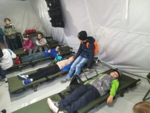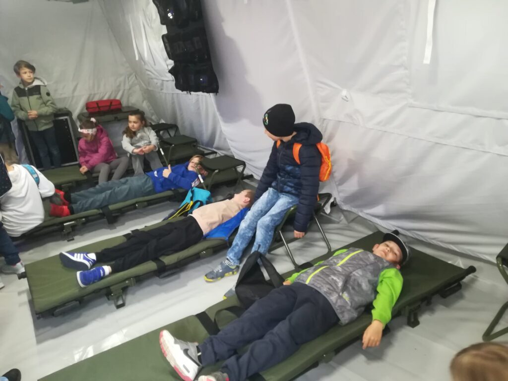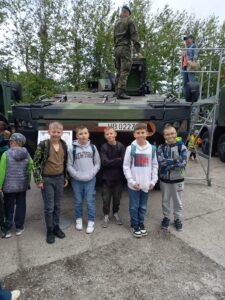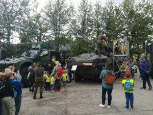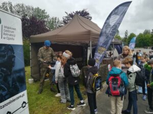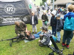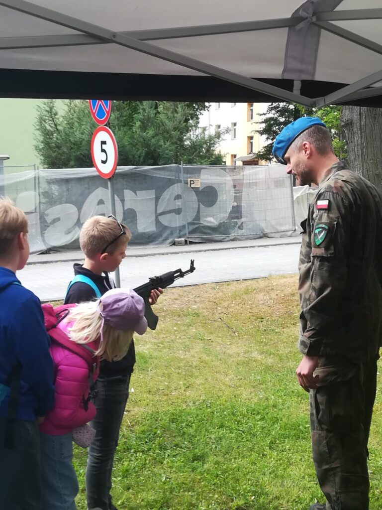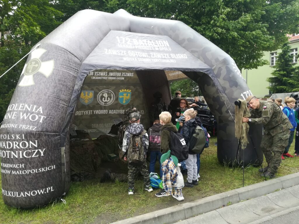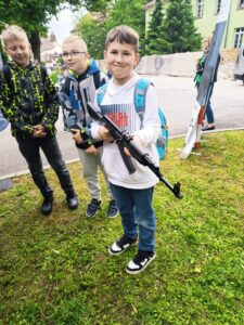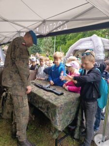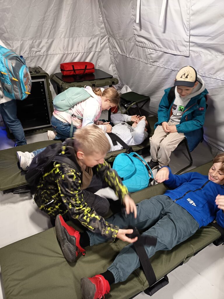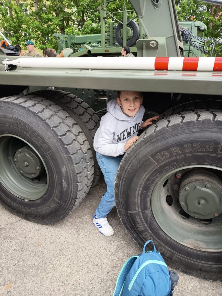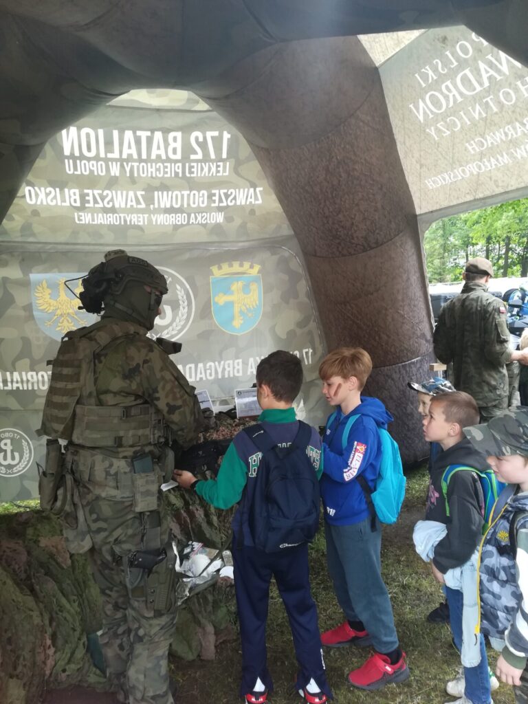 29 maja uczniowie klas I-III zwiedzali koszary 10 Opolskiej Brygady Logistycznej. Dzieci z ogromnym zainteresowaniem poznawały tajniki wojskowej codzienności. Zwiedzały pojazdy wojskowe, zaglądały do namiotu szpitalnego, brały udział w pokazach udzielania pierwszej pomocy, a także mogły na własne oczy zobaczyć specjalistyczny sprzęt wykorzystywany przez żołnierzy. Nie zabrakło też emocji – możliwość wejścia do wojskowej karetki czy potrzymania prawdziwej broni dostarczyły dzieciom niezapomnianych wrażeń. Wizyta w koszarach była nie tylko atrakcyjną formą edukacji, ale również okazją do kształtowania postaw patriotycznych i poznania roli, jaką pełni wojsko w naszym kraju.