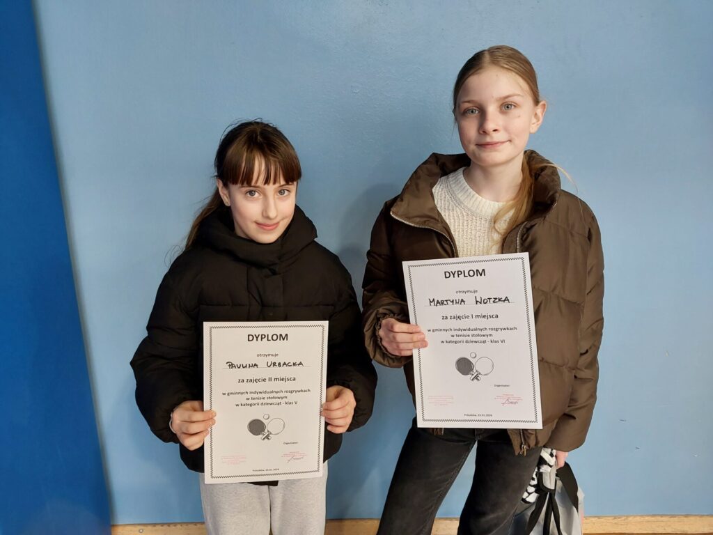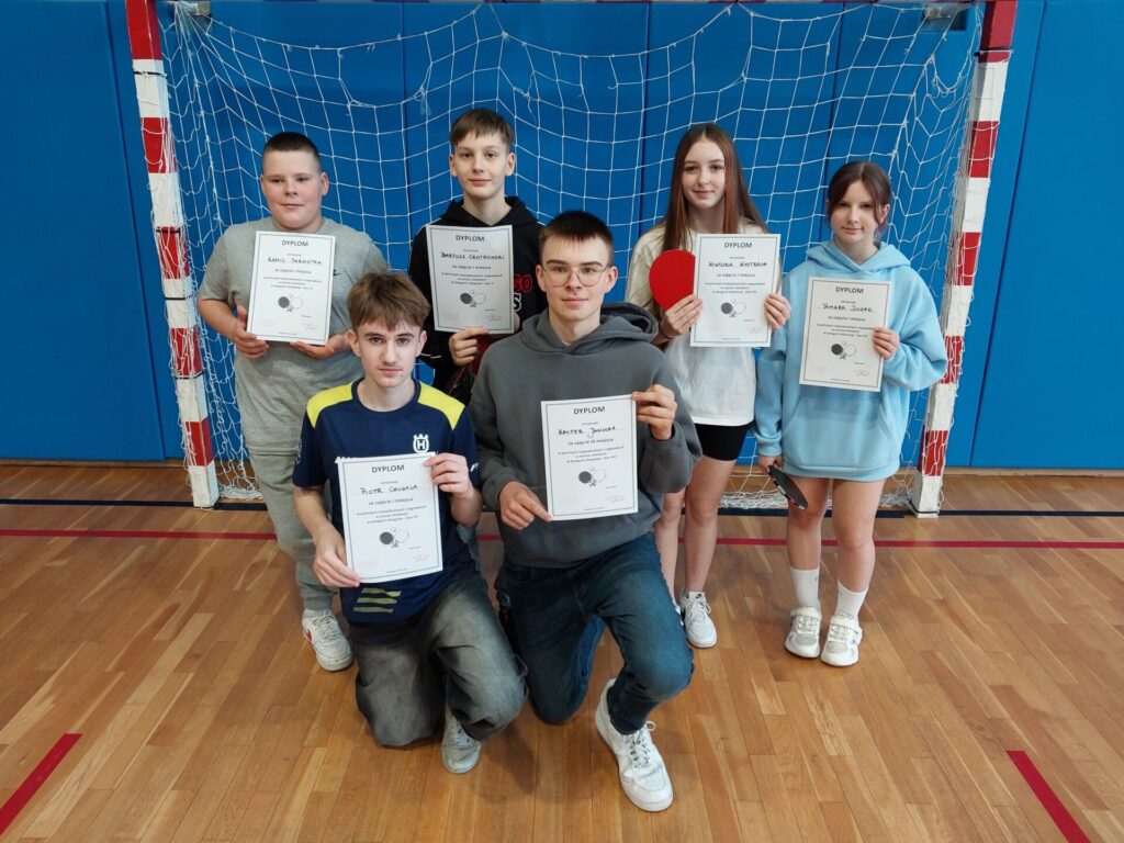 W piątek 23 stycznia na sali gimnastycznej w Prószkowie odbyły się Mistrzostwa Gminy w Indywidualnym Tenisie Stołowym. Naszą szkołę reprezentowało ośmiu zawodników – 4 dziewczęta i 4 chłopców. Miło nam poinformować, że każdy z naszych reprezentantów zakończył zmagania na podium w swojej kategorii wiekowej. Łącznie nasi uczniowie zdobyli 6x I miejsce, 1x II miejsce i 1x III miejsce. Gratulujemy!
