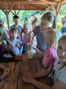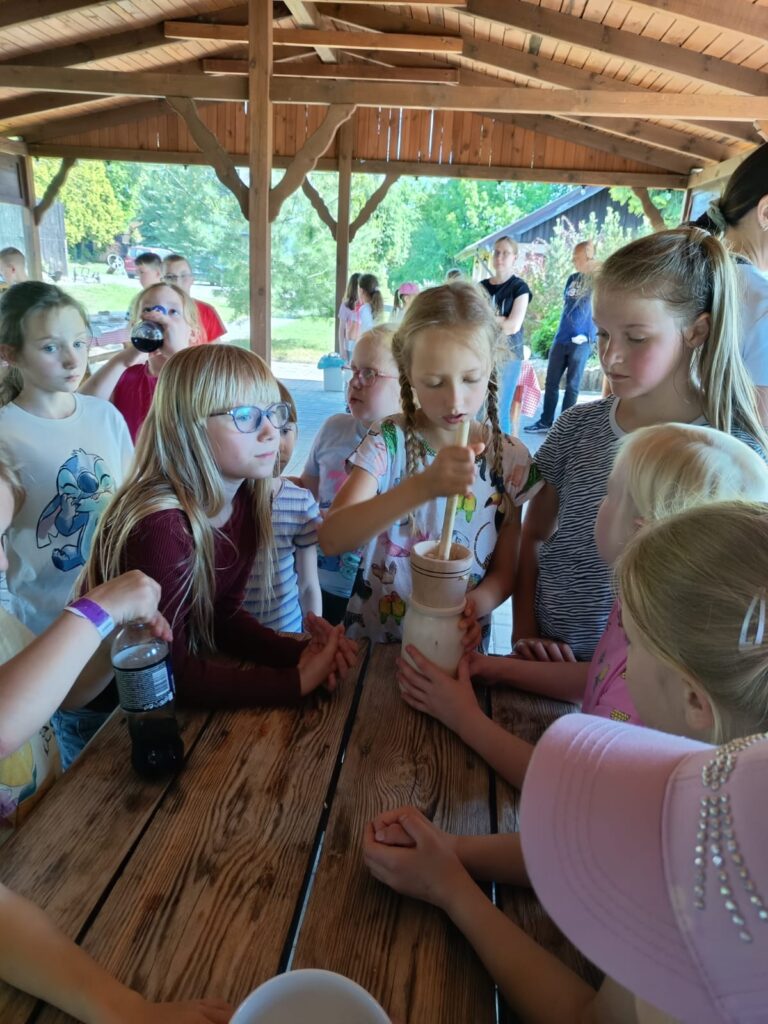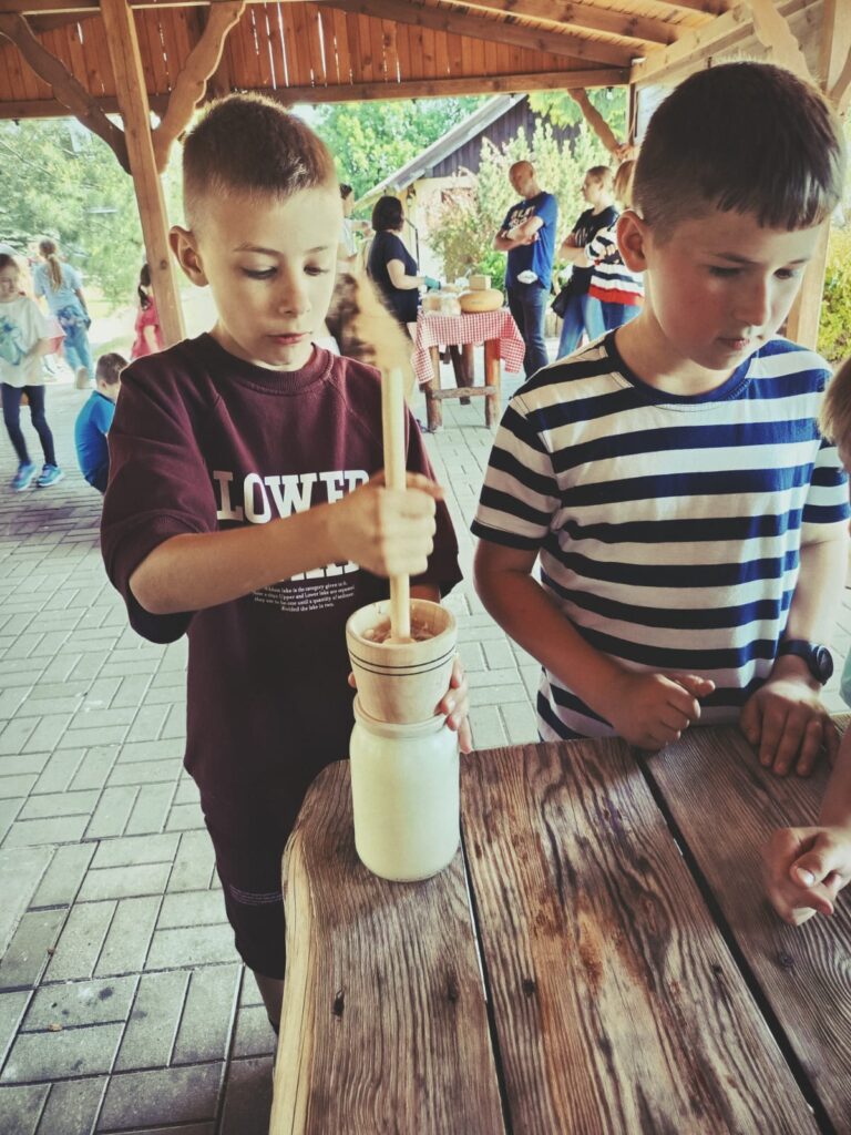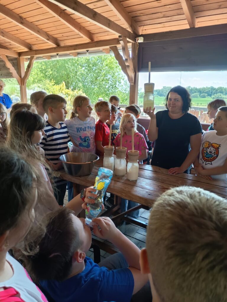W dniu 27 maja uczniowie klas I – III uczestniczyli w wyjeździe do Gospodarstwa Agroturystycznego Stary Młyn w Obrowcu. Na miejscu można było zobaczyć serownie, w której powstają jogurty i sery z mleka krowiego i koziego, obejrzeć stare maszyny rolnicze, a także podziwiać różne zwierzęta hodowlane i domowe (owce, króliki, kucyka, psy, koty). Uczniowie brali udział w warsztatach wyrabiania miseczek z gliny i gipsu, a także ubijali masło tradycyjną metodą. Dużą radość sprawiły dzieciom również zabawy na placu zabaw oraz degustacja domowych wyrobów: różnych gatunków sera, swojskiego chleba i masła, a także przepysznych przetworów warzywno- owocowych.